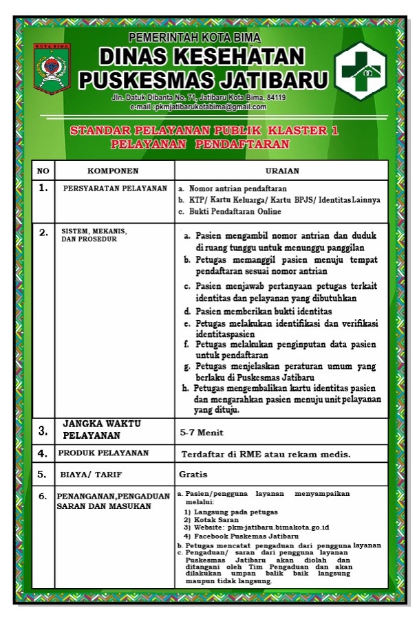 Standar Pelayanan Pendaftaran Puskesmas Jatibaru